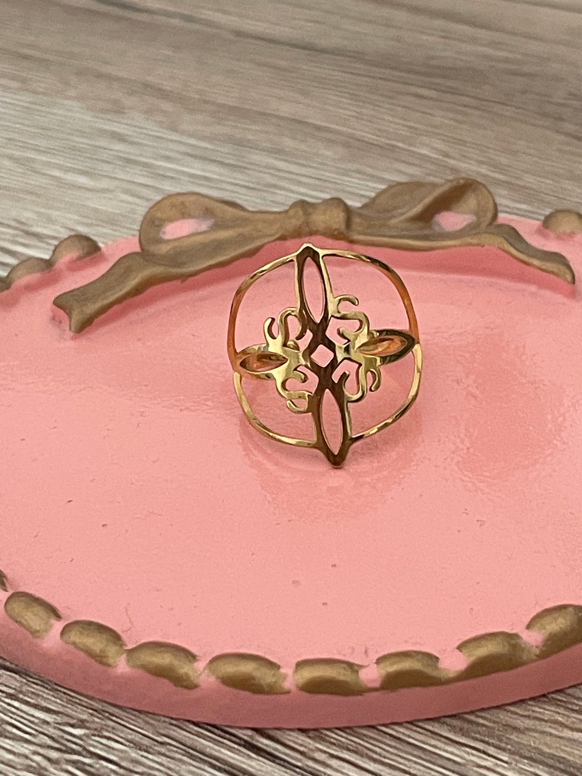 Bague motif arabesque, Mystika, acier inoxydable doré.