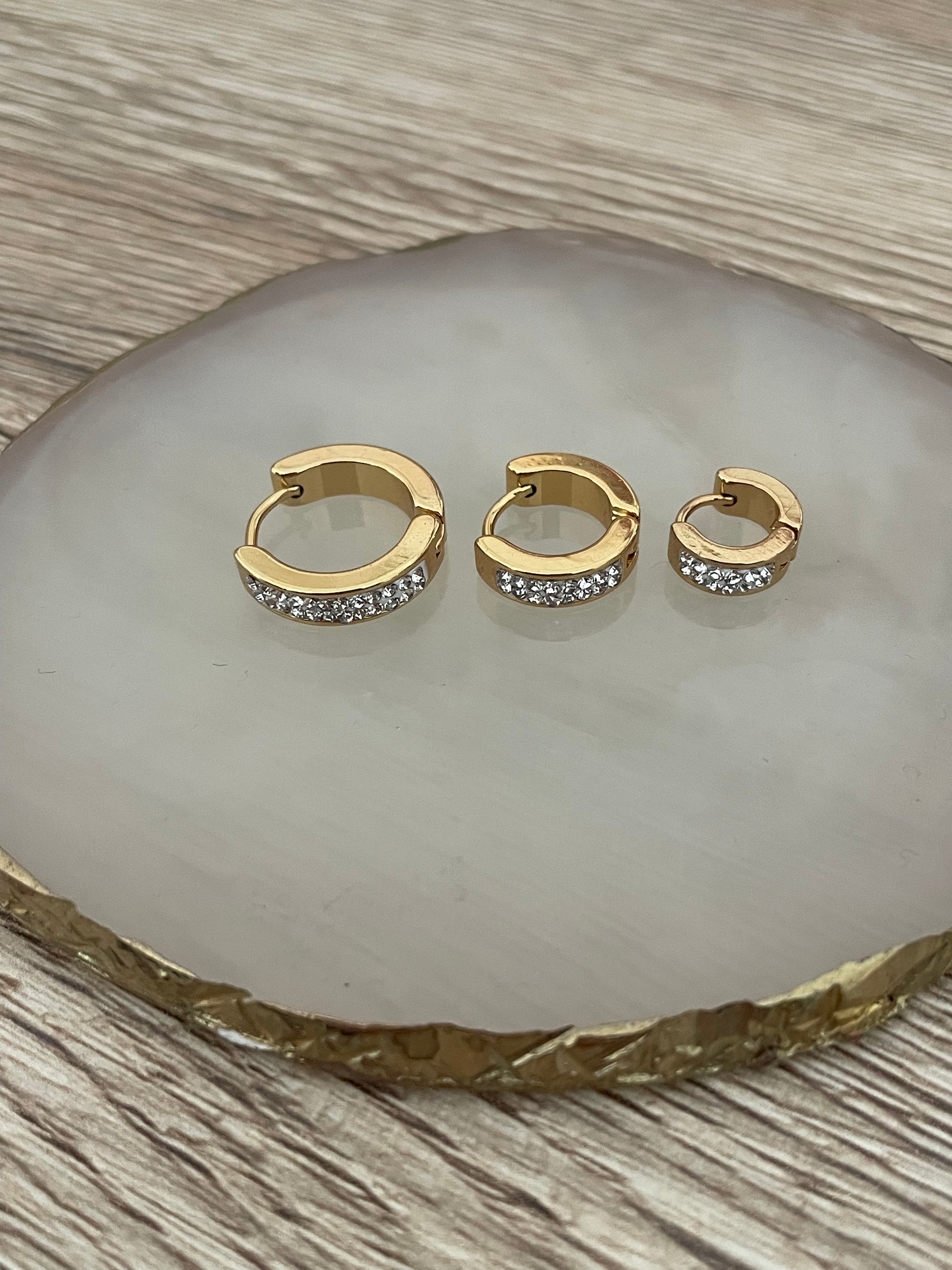 Boucles d’oreilles (petites) créoles Marine strass, acier inoxydable doré.