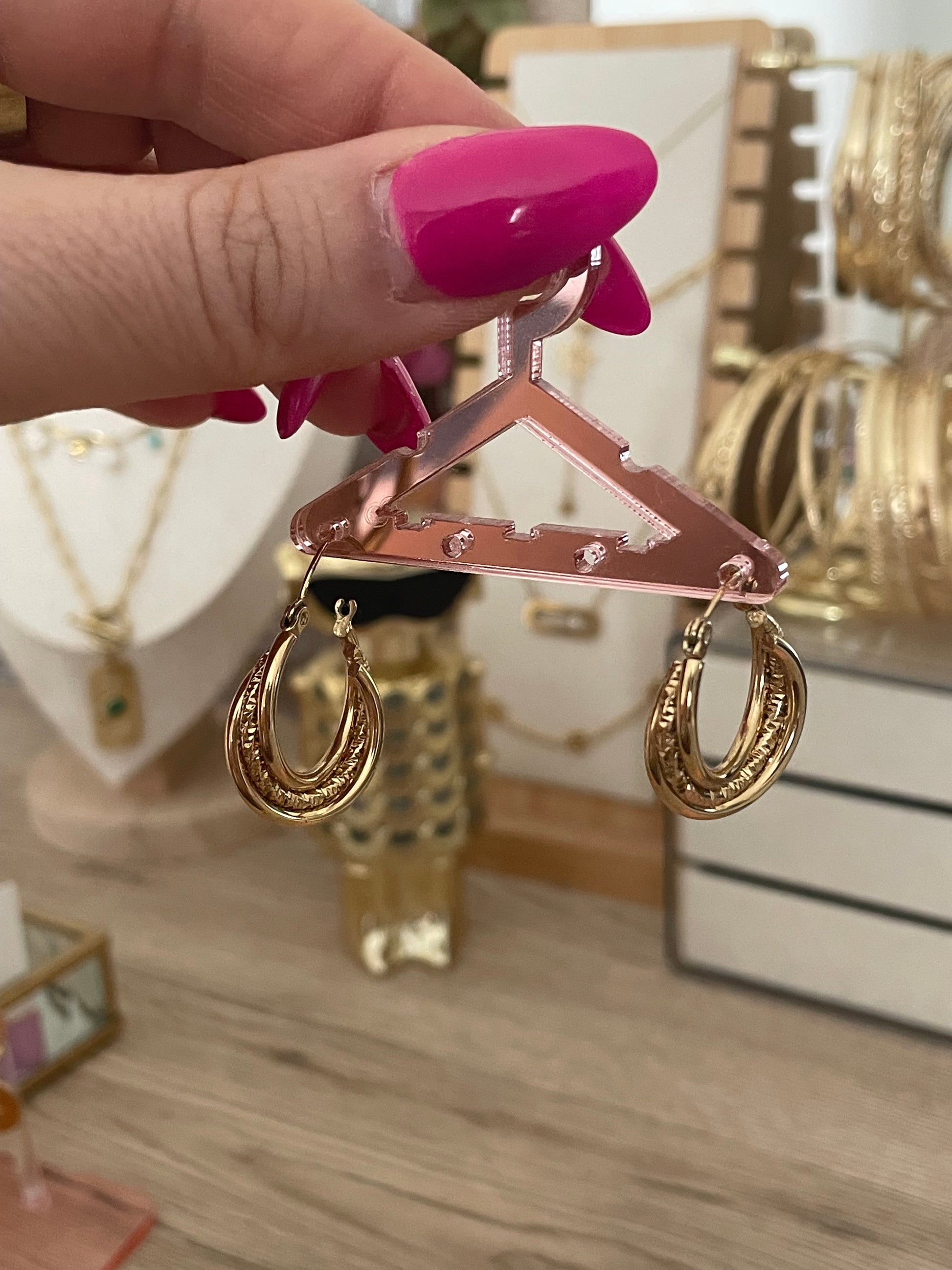 Boucles d’oreilles Lucie, texturisé, acier inoxydable doré.