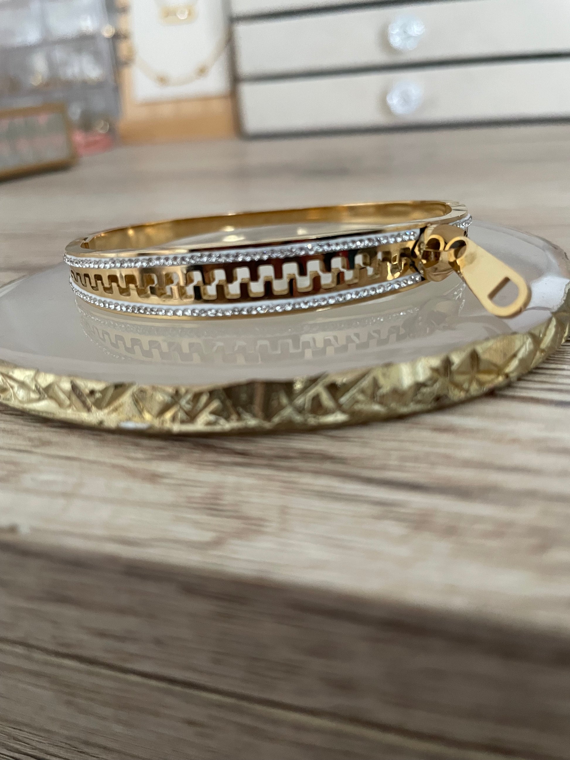 Bracelet Fermeture strass Gina, acier inoxydable doré.