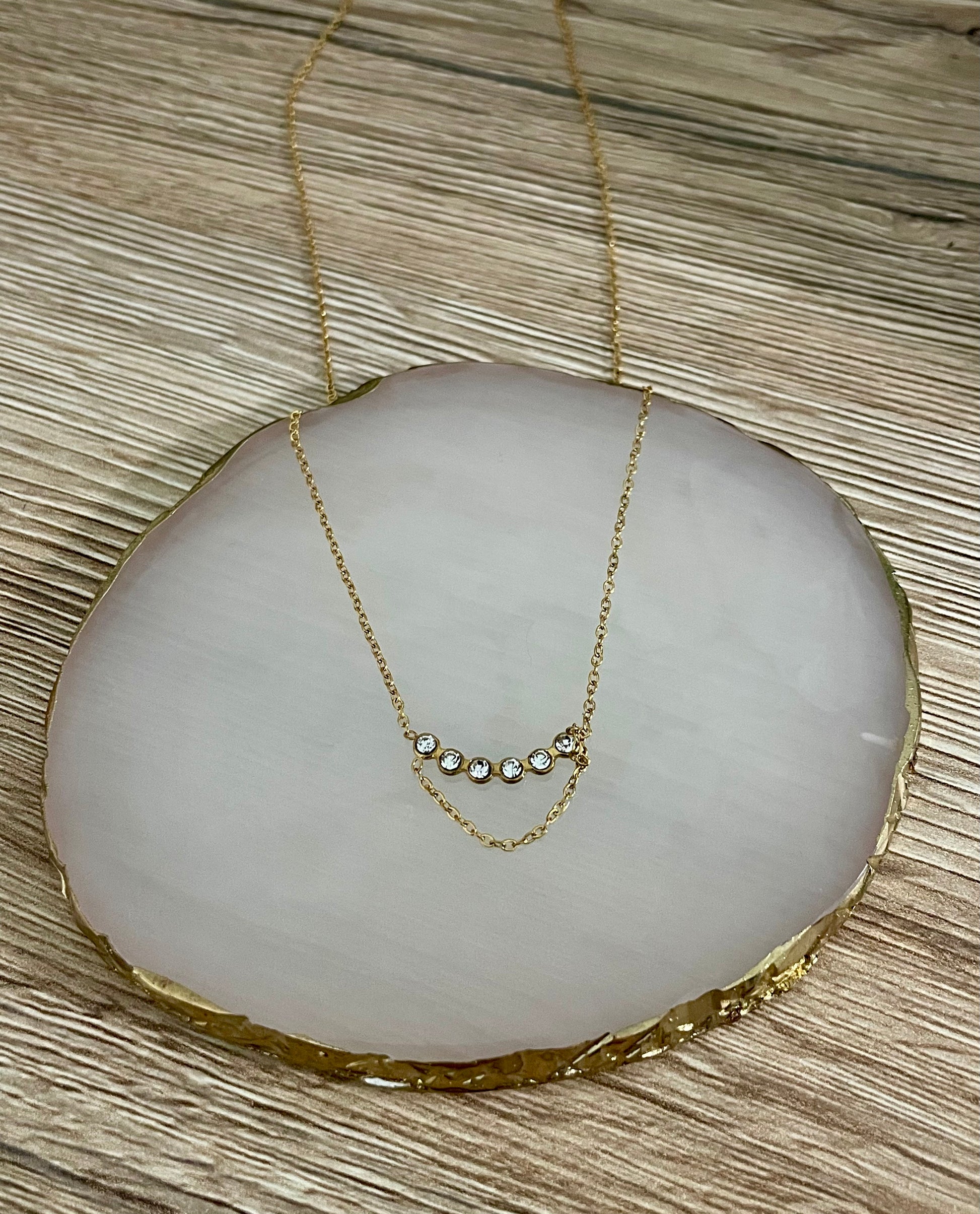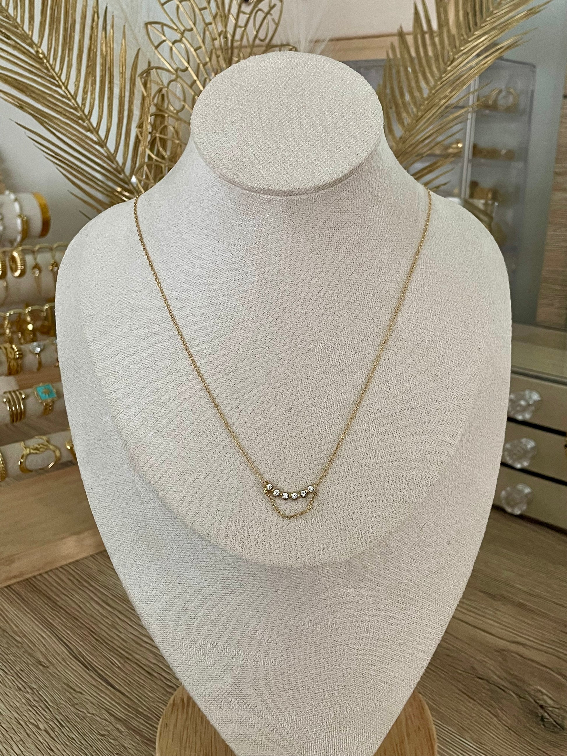 Collier Nora strass chaîne pendante, acier inoxydable doré.